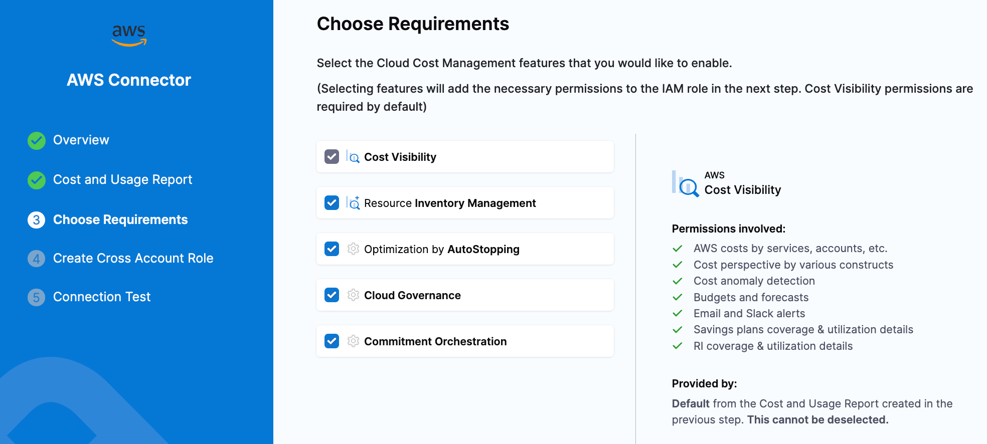 Finally we ask for ce:GetRightsizingRecommendation to collect Compute Optimizer recommendations at the organization level, to be shown in Harness Recommendations.