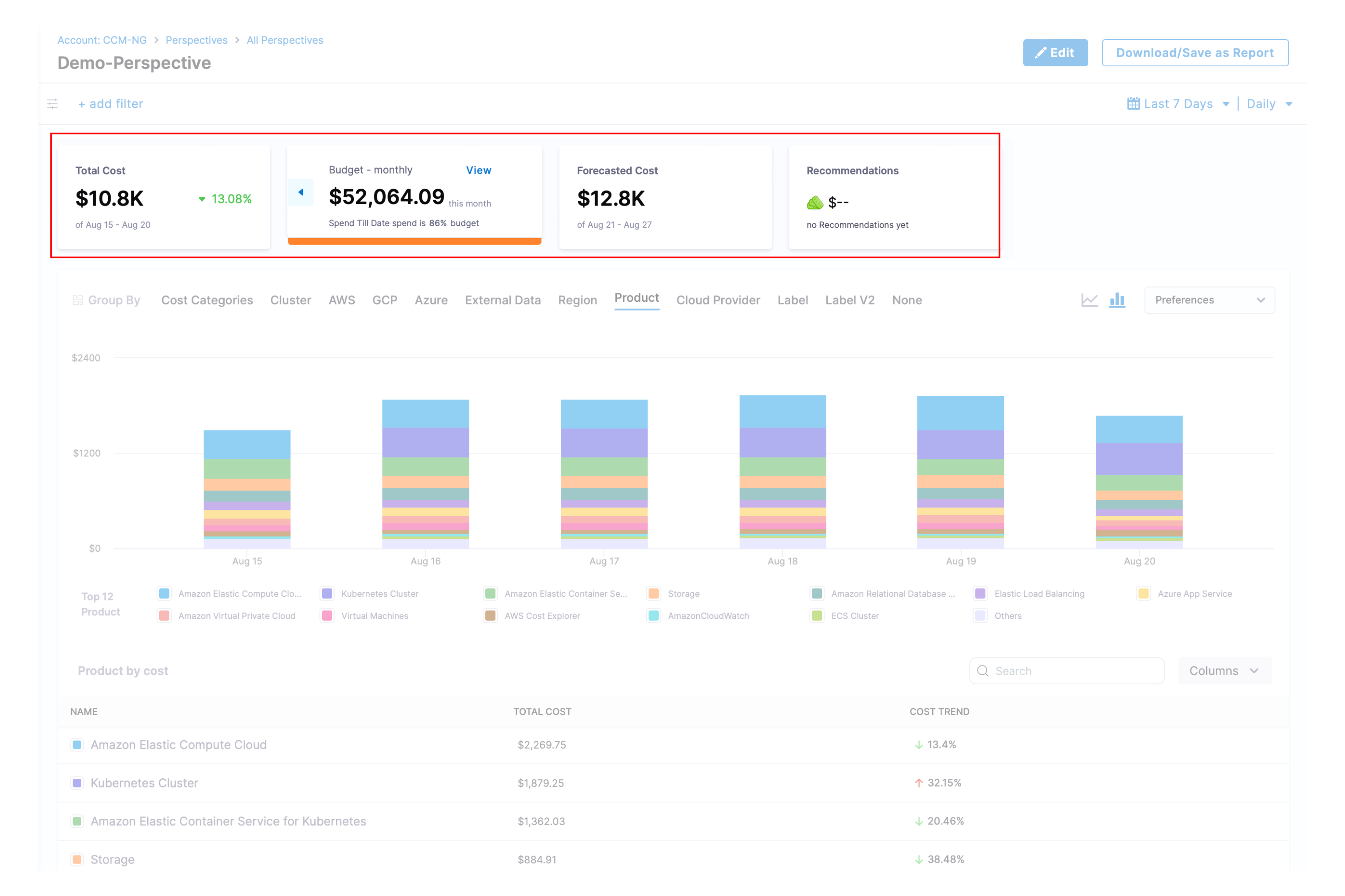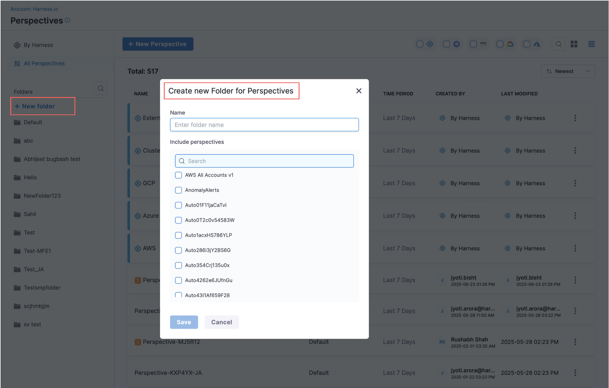 To view and manage all your saved reports: Navigate to Cloud Costs > Perspectives > Saved Reports
