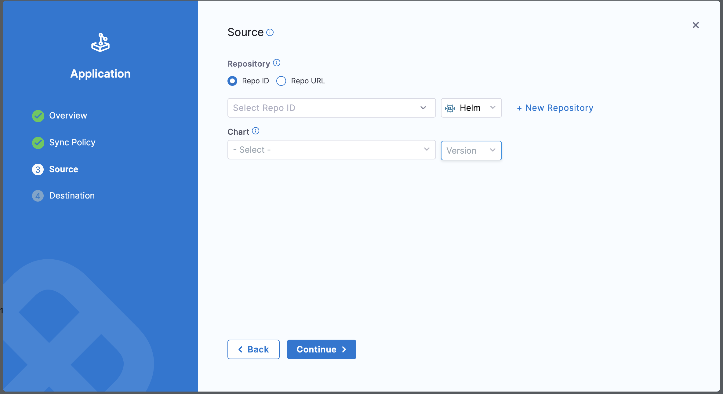 1. Create a new Argo Application. Choose the proper GitOps agent, and optionally add a service and environment.
