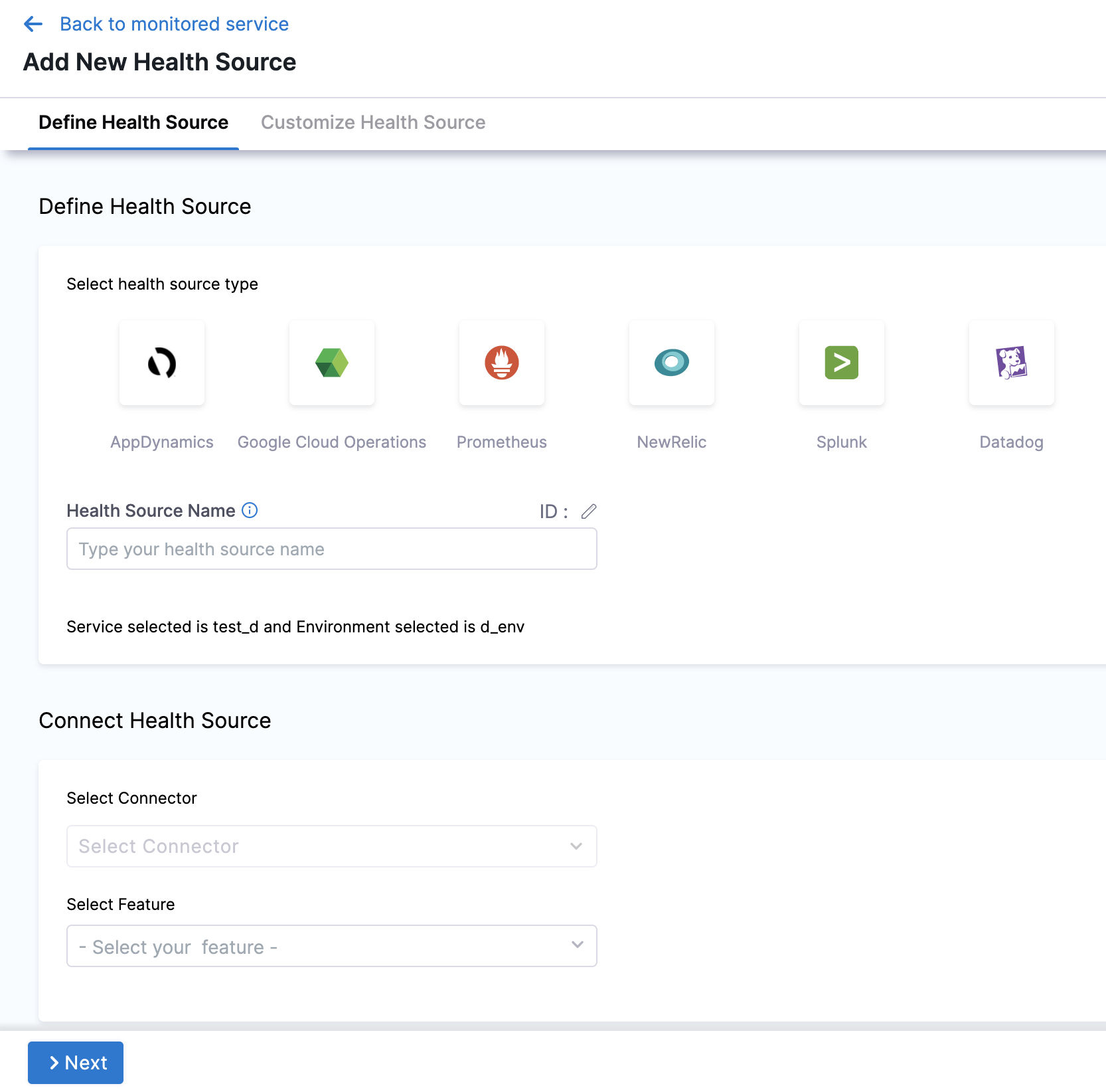 The subsequent settings in Customize Health Source depend on the Health Source Type you selected. ### Option: Cloud Metrics