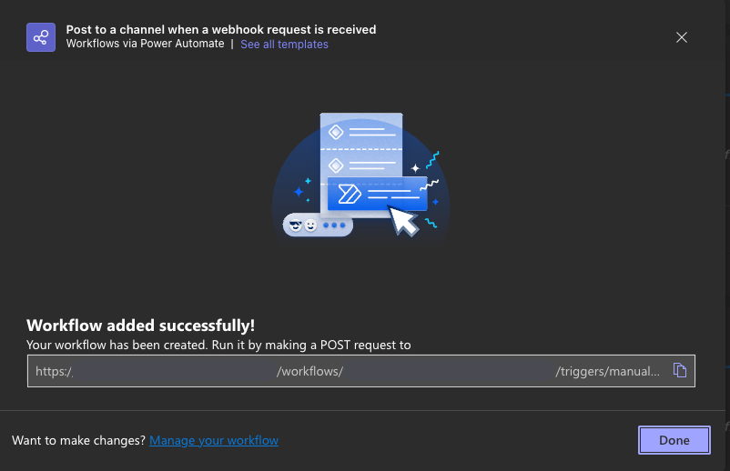 1. In the Workflows section, select the workflow Post to a channel when webhook request is received.