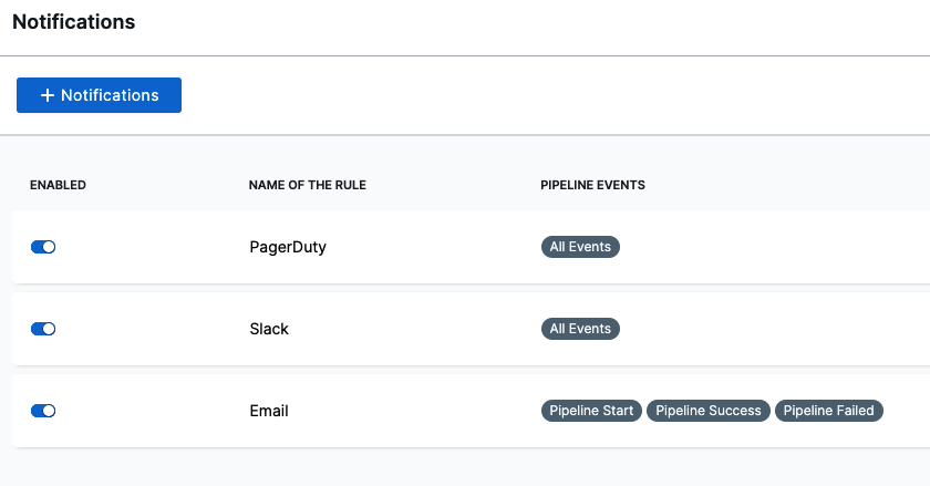 Once you've created notification rules, you can enable and disable them in the Notifications page.