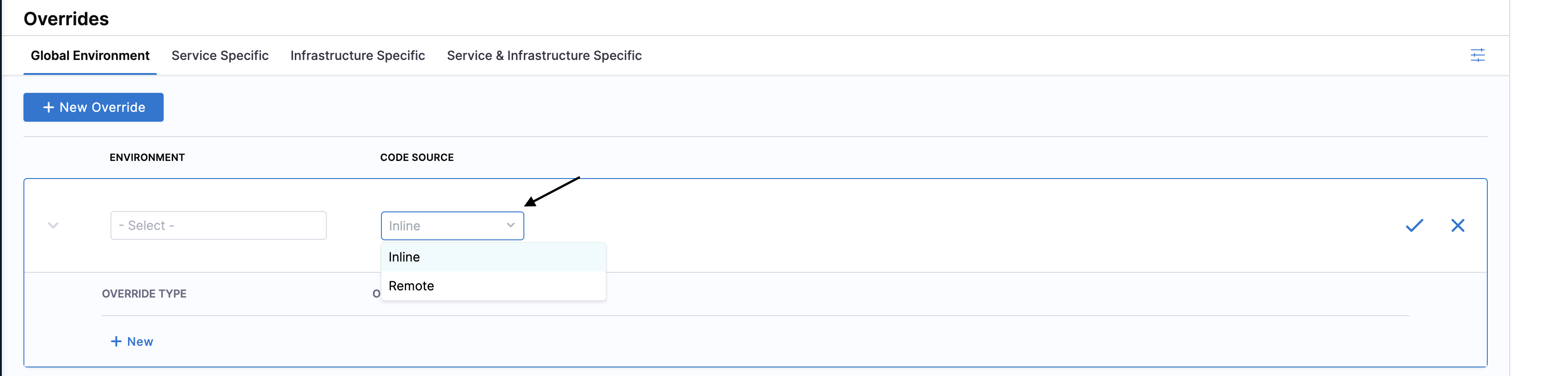 • Overrides V2 are supported for infrastructure entities, infrastructure and services combinations additionally, and can be visualized in a separate Overrides V2 section under Project, Org, and Account scopes.