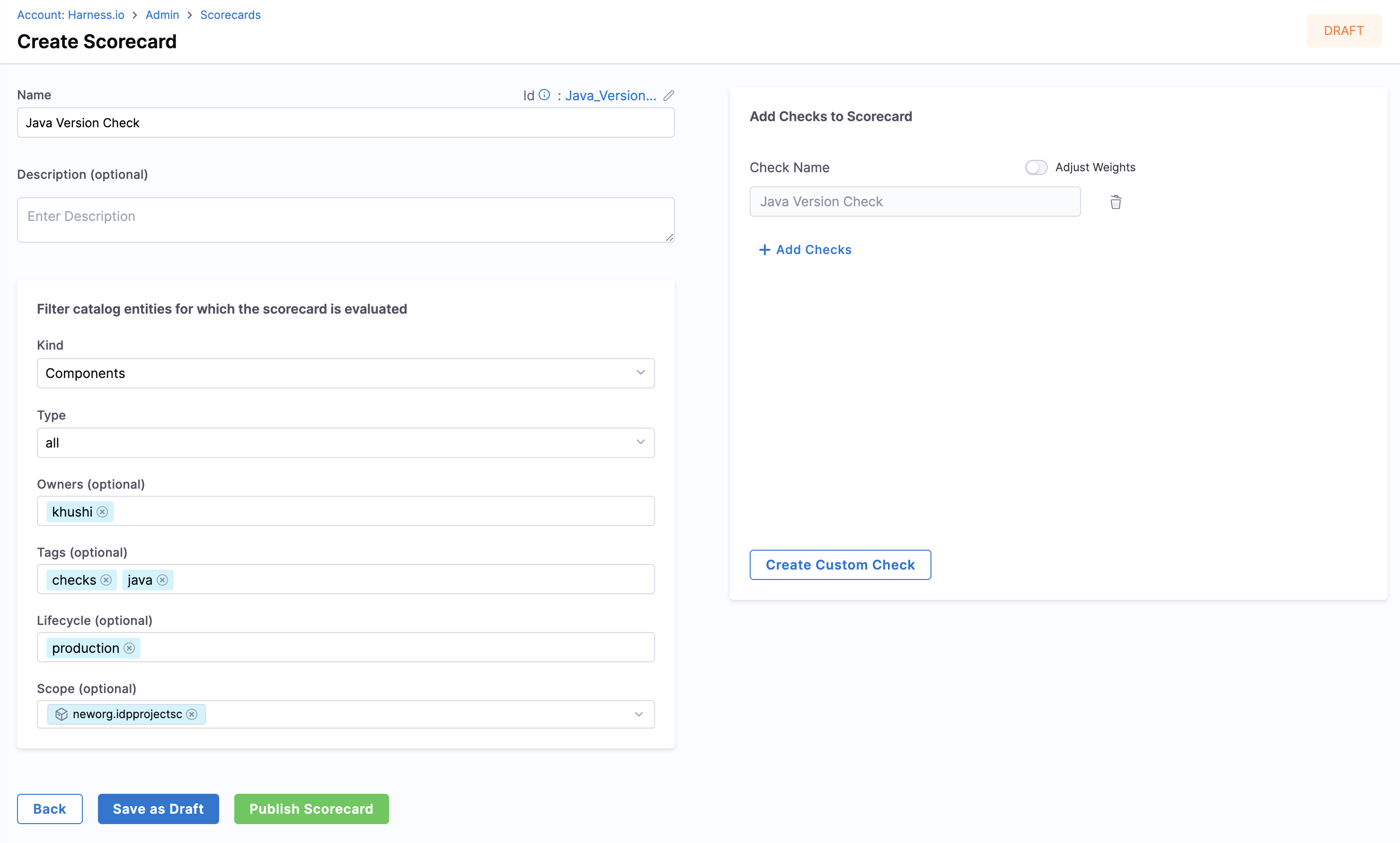Once you've created the checks, follow these steps to add them to a new Scorecard: