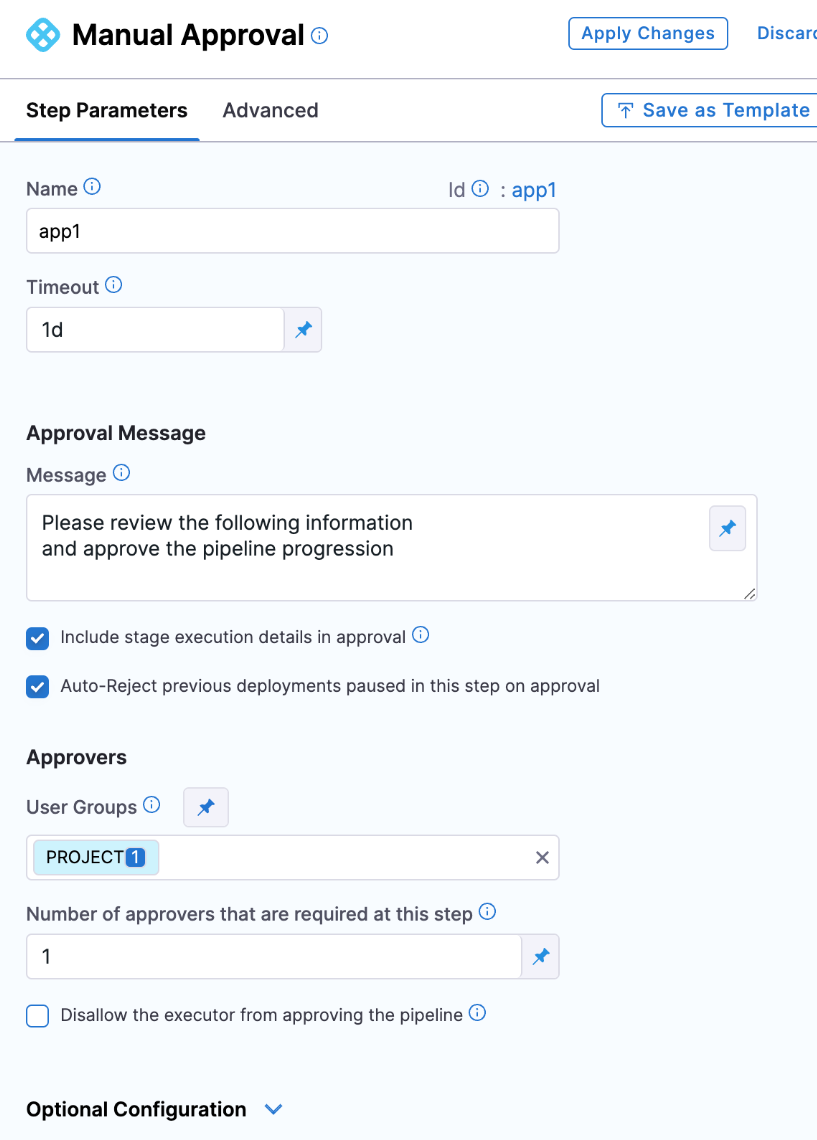 • If you have two approval steps in a step group of a stage with the same step identifier, Harness won't be able to differentiate between the approval steps, and rejects previous deployments with the same identifier.