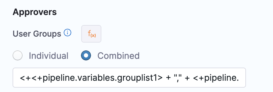• Combined: Specify a combined expression for all user groups that need to be configured as Approvers. This expression must resolve to a list of strings.