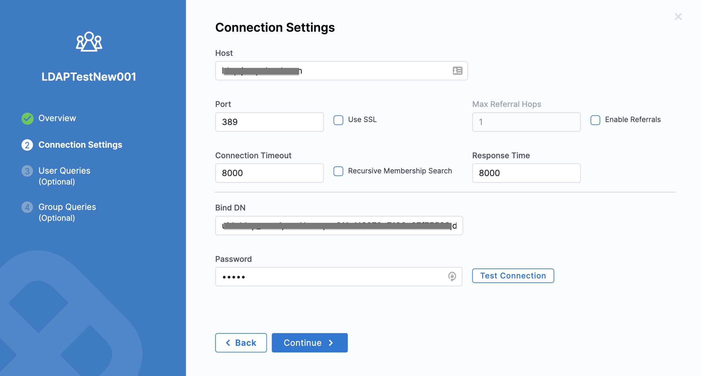 Select Use SSL if you entered port 636 in Port and are connecting over Secure LDAP (LDAPS).