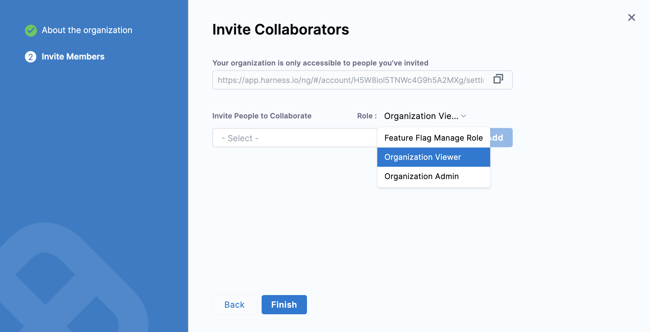 2. In Role, select the role the member will have in this org, such as Organization Admin or Organization Member.