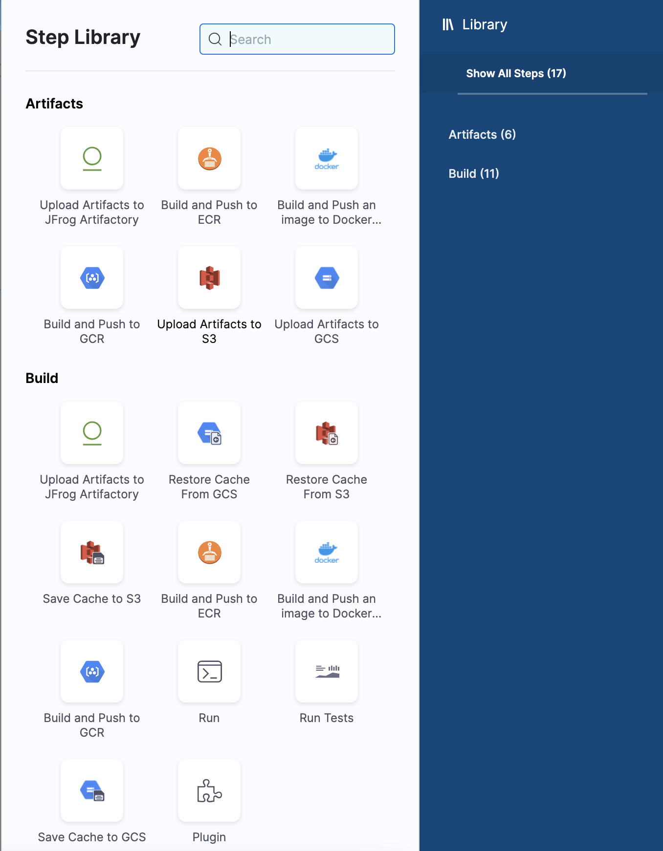 2. Go to your pipeline, and then select Add Step. The Step Library panel opens.