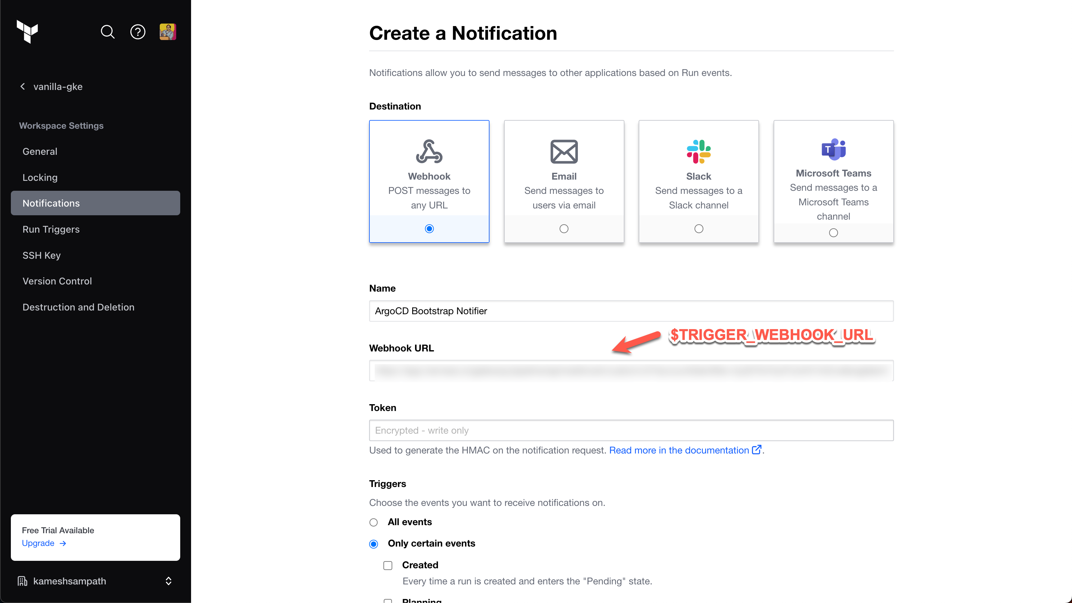 Tutorial - Terraform Cloud notification triggers