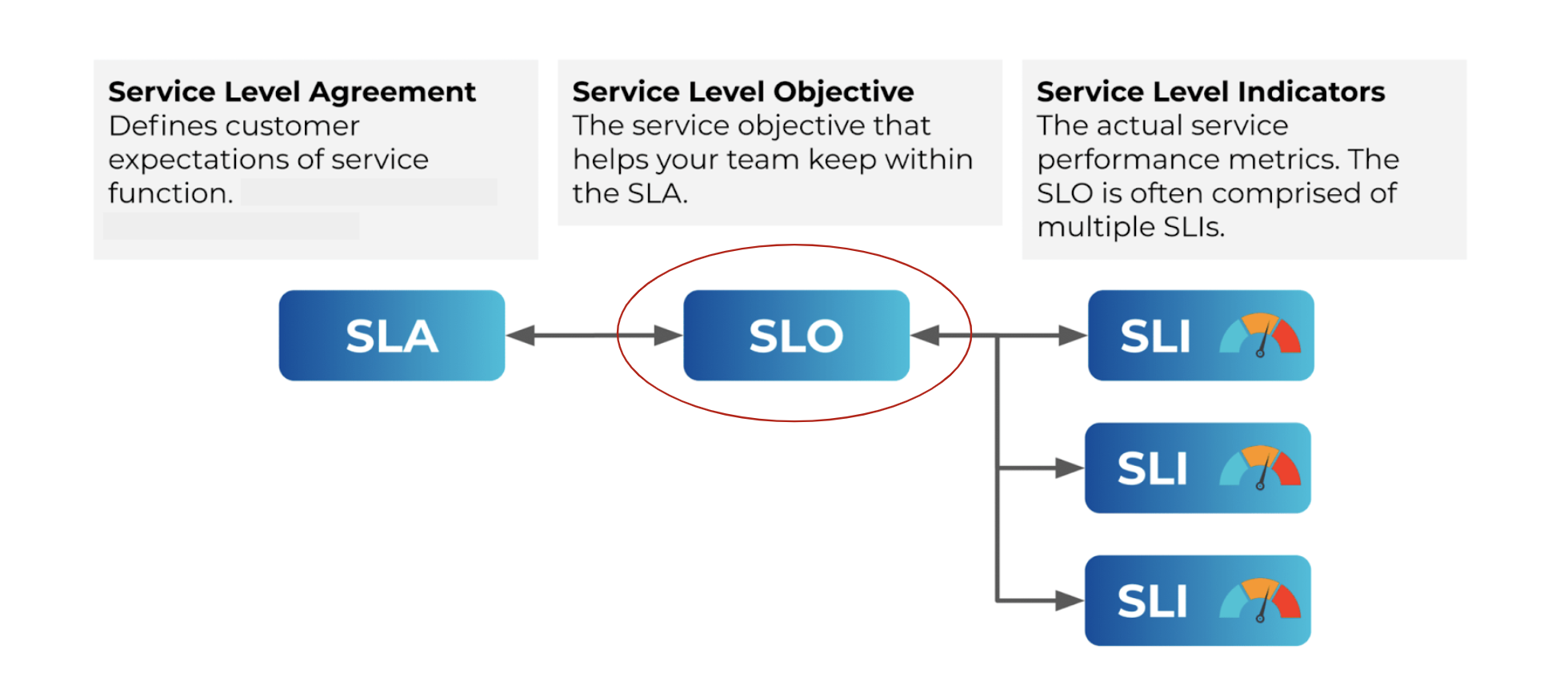 A Service Level Objective (SLO) is an agreed-upon objective or a reliability target value for a system's availability, measured by service level indicator (SLI) metrics. It is the minimum reliability level, in terms of customer expectations, that you expect a service to achieve most of the time. SLOs are reasonable approximation of user experiences which lets you discover the right balance between velocity and quality. For example, consider a scenario wherein a team is consistently meeting its reliability goals, it can increase its velocity of feature releases. However, if the goals are not being met, it results in outages, performance degradation, and so on. The team must then first work on stability and reliability needs before adding new features. SLOs help to balance the possible negative consequences and the lack of availability.