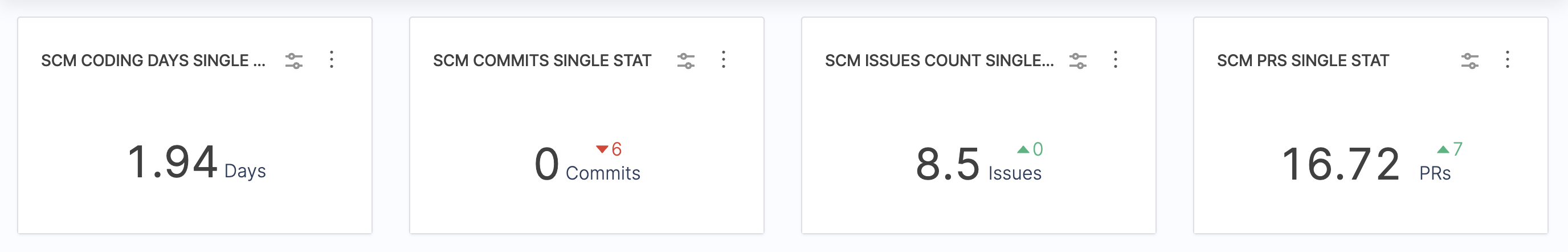 The Sprint Metrics Single Stat widget presents a single sprint metric averaged over the selected time interval. This widget can help you use historical metrics for sprint prediction and performance assessment.