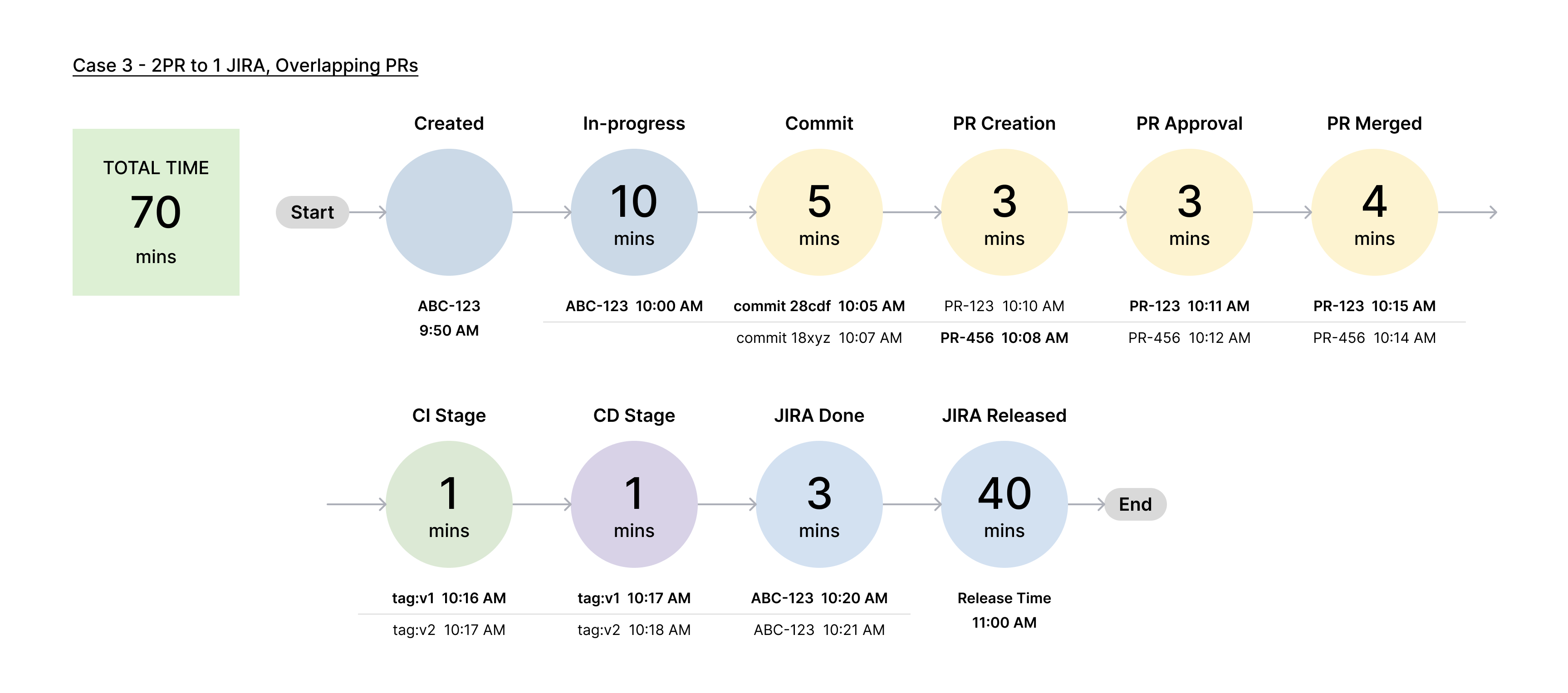 Calculation Example 3 - Two Overlapping PRs associated with a Single Jira Ticket